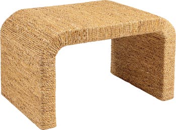 The Woven Water Hyacinth & Acacia Wood Accent Bench with Waterfall Edge captures the essence of coastal living with its natural materials and elegant design. Featuring a seamless waterfall silhouette, this versatile bench is crafted with an acacia wood frame wrapped in handwoven water hyacinth for a warm, organic look. Its compact size 27.5"L x 18"W x 16.5"H makes it a stylish and functional addition to entryways, living spaces, or bedrooms. Can be used as a small coffee table, end table, or bench. Ideal for adding a touch of boho charm, coastal freshness, or French Country elegance to the home.