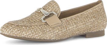 Polished bit hardware adds an extra touch of modern sophistication to this distinctive woven loafer.