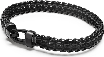 A timeless woven 8mm box chain bracelet in glossy, hypoallergenic stainless steel with hand-braided durable nylon, handmade in Los Angeles. Versatile worn solo or stacked, it adds effortless style to any look.
