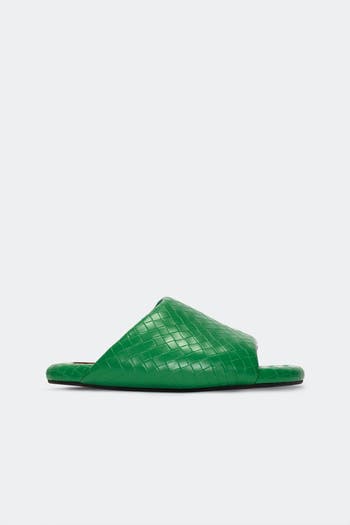 Our ultra puffy, ultra comfortable woven vegan leather bubble slide sandal. Elevate your everyday.