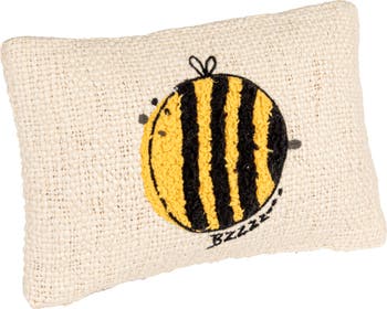 - A charming addition to any room, this woven cotton lumbar pillow features an intricately embroidered bee, bringing a buzz of life to its crisp white canvas