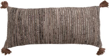 - This rustic lumbar pillow features an organically woven striped cotton, finished with decorative tassels