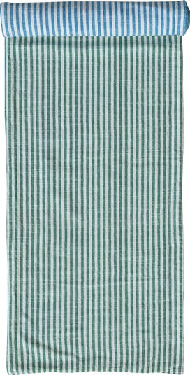 - This reversible table runner features vibrant stripes in blue, green, and natural hues