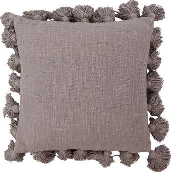 - A cozy and stylish pillow with a woven cotton slub cover and tassels in a grey color