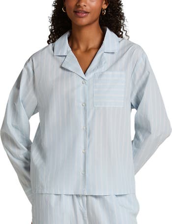 Complete your bedtime look with this matching striped pajama top, crafted from lightweight cotton for a soft and gentle feel. With a relaxed silhouette and classic crew neckline, it’s the perfect blend of comfort and cuteness. The coordinating stripes make it a must-have for stylish sleepwear lovers. Pair it with the matching pants