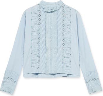 The High Neck Cotton Blouse Sky with Lace Inserts is an expression of timeless elegance. Crafted from pure cotton, this slim-fit blouse features delicate lace inserts and refined beading. A creation of Fortela , it embodies sartorial craftsmanship and conscious style, inviting you to experience fashion as an art form. Made in Italy.