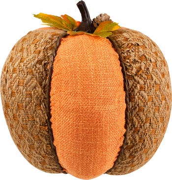 This pumpkin decoration is a unique and stylish way to highlight the rustic beauty of fall throughout your home. Designed with a textured woven jute base wrapped in vibrant orange burlap, this seasonal accent combines natural materials with classic harvest tones for an inviting autumn look. The combination of jute and burlap creates a warm, earthy texture that stands out beautifully on mantels, entryway tables, shelves, or as part of a festive Thanksgiving centerpiece. Perfectly sized to draw attention without overwhelming your space, this decorated pumpkin blends seamlessly with farmhouse, country, or traditional fall décor. Its handcrafted appearance gives it a cozy, homespun feel, making it a versatile piece for both casual and elegant seasonal arrangements. Pair it with other pumpkin decor, foliage garlands, or harvest accents to build a cohesive autumn display. Durable and lightweight, this woven pumpkin can be enjoyed year after year, eliminating the need for real pumpkins while still delivering that cozy harvest appeal. Whether used as a standalone piece or grouped with complementary autumn décor, this pumpkin decoration makes a striking statement that embodies the colors and textures of the season, creating a welcoming atmosphere throughout your home. Features: Alternating woven and burlap ribs Maple leaves, pinecone, and berry details Each rib is separated by twisted jute Recommended for indoor use only Dimensions: 8.5" high x 8" diameter Material(s): fabric/jute/plastic