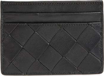 A woven design brings intriguing texture to this slim leather case that stylishly organizes your essential cards.
