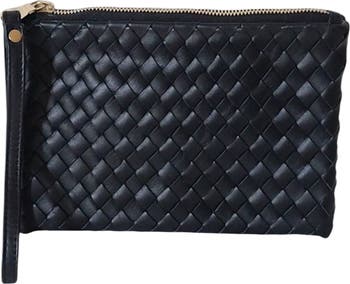 The Artisan & Company Woven Leather-Flat Zip Pouch, Main, color, Black