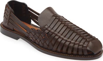 A loafer silhouette gives this sandal the reliable fit of a shoe with the casual look and breathable comfort of woven leather construction.