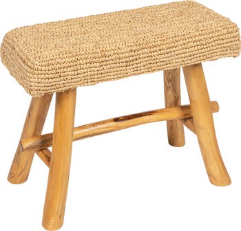 - Add some natural texture and style to the space with this stool that features a woven mendong seat and teakwood legs