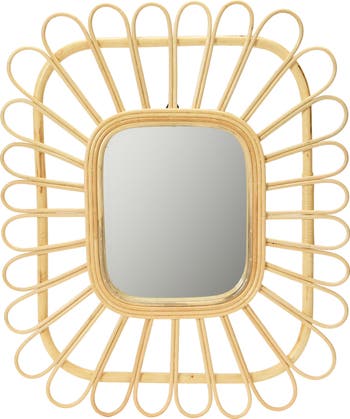 - Rectangle wall mirror with woven rattan petal frame in a natural finish