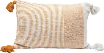 Woven Recycled Cotton Blend Lumbar Pillow with Tassels, Cover Only