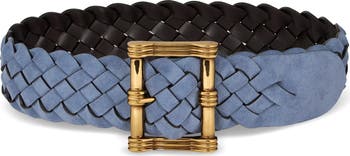 The Italian luxury fashion house introduces ultimate styling versatility to your capsule wardrobe with this artfully woven suede belt featuring a reversible two-tone design.