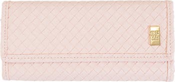 Our Luxe Woven Jewelry Wallet in Shell is a chic refresh of a TRVL favorite, designed to keep your jewelry secure and organized wherever you go. With smart interior details and a coordinating pinstripe lining, it’s a polished essential that pairs beautifully with the entire TRVL collection. Woven Vegan Leather. Lined in coordinating pinstripe. Snap closure.