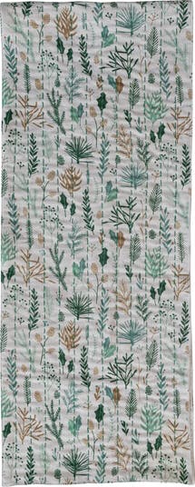 Woven Slub Printed Table Runner with Botanical Pattern, Hand-Embroidered Kantha Stitch and Velvet Back, Multicolor