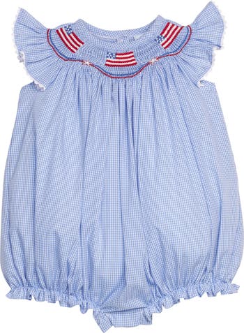 Our Smocked Bishop Bubble features beautiful smocking across the neck-line and a flutter sleeve. Big sisters can coordinate in our Smocked Bishop Dress!