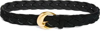 A gleaming buckle in a paisley-inspired sculptural design centers this belt expertly woven from calfskin suede.