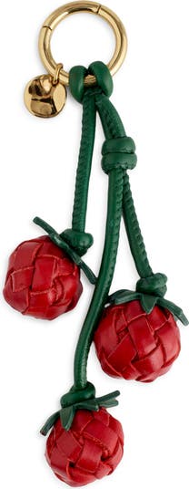 Crafted from leather, this tomato charm brings together intricate woven detailing and a sleek metal ring for easy attachment. This playful yet sophisticated design adds a touch of fun to any bag.