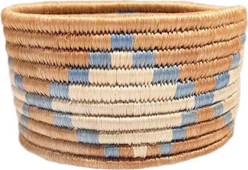 This best-selling trinket basket is an adorable feminine accent to any space and is perfect for gift giving. 5.5" W x 3" H Hand dyed pink and tan Handwoven sweetgrass & sisal Circular base Tightly coiled, durable sweetgrass with sisal wrapped around in an intricate pattern The woven trinket basket can be used simply as a playful and feminine home decor piece or as a catch-all for everyday essentials like your keys and headphones.