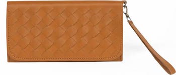 This handwoven full-grain leather wallet combines style and functionality with its extra-large size and additional interior pocket.