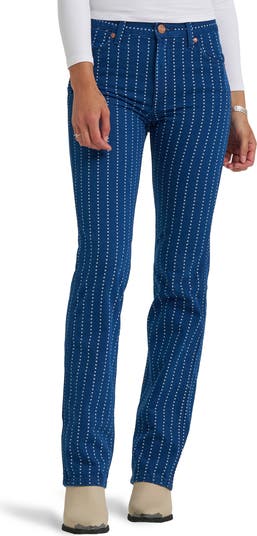 Bright stars make up the sleek pinstripes on these full-length bootcut jeans cut from nonstretch denim in a vibrant, solid wash.