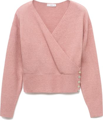 Feel the warmth and sophistication of this perfectly wrapped cardi knit with a cozy rib trim.