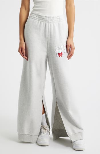 Because bows belong on the best gifts, these split-hem sweatpants deliver ribbon-ready charm in supersoft cotton with a relaxed drape, then tops the nubby logo with sweet accents for a finish that says you already brought the present.