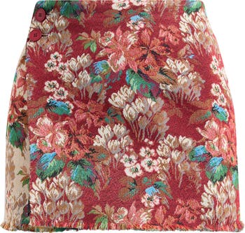 A feathery frayed hem adds texture and movement to this leggy-length skirt covered in country-inspired blooms.