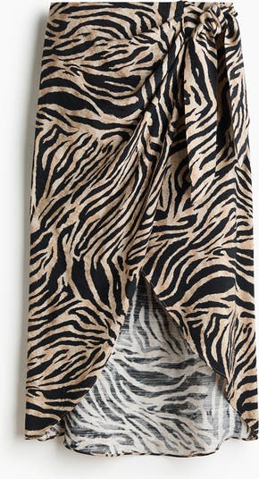 Calf-length, fitted skirt in a viscose-blend weave. Features a high waist and a wrapover front with wide ties at one side and concealed narrow ties at the other. Unlined.