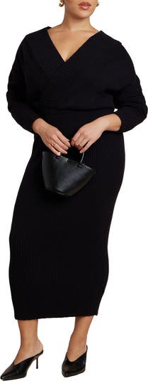 - Slip into effortless romance with this wrap sweater maxi dress. A surplice neckline, elastic waist, and stretch-knit construction fuse graceful movement with cozy appeal.