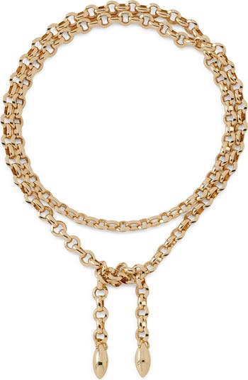 Get creative with this wraparound necklace designed with a long chain made up of glossy round links and finished at the ends with two marquise-shaped drops.