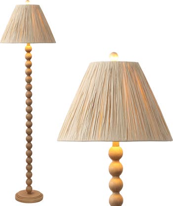 Rustic style gets a modern twist with this bobbin-style floor lamp. Made from durable resin, this wood-grained lamp is topped with a pleated paper shade and an LED bulb for warm, bright light. Tuck one into a corner for cozy charm in the living room or bedroom.
