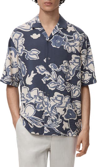 Tropical blossoms invite you to kick back and relax in this camp shirt cut from an airy, purposefully wrinkled fabric that jump starts the laid-back vacay vibes.