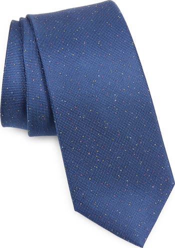 Colorful neppy flecks scatter like confetti against the solid coloring of a tie crafted for versatility and distinction from polished silk.