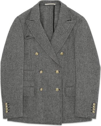 The Travel giacca classica in lana embodies Fortela's refined essence. Meticulously crafted in Italy from premium herringbone wool in collaboration with Fox Fabrics, this double-breasted blazer features exquisite jewel buttons with the iconic "F" logo. A perfect blend of sartorial tradition and timeless elegance, this blazer will add vintage charm to your wardrobe. Invest in a piece that reflects conscious style and artisanal craftsmanship by Fortela.
