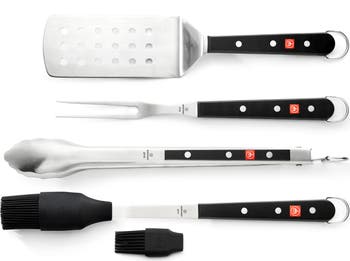 Upgrade your barbecuing, grilling and smoking with this four-piece set crafted from high-carbon German stainless steel with an emphasis on function and design. The tools feature handles that are long enough to protect your hands from flare-ups but short enough to maintain control.
