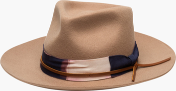 Introducing the Wyatt in Camel, a stylish Australian wool fedora featuring a hard brim, dyed ribbon, and genuine leather trim. Perfect for adding a touch of sophistication to any outfit.