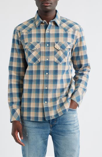 Inspired by vintage Western styles, this plaid shirt cut from soft, breathable cotton boasts all the classic hallmarks like polished snaps, peaked yokes and angled bias-cut pockets.