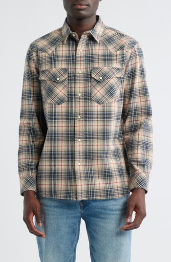 Inspired by vintage Western styles, this plaid shirt cut from soft, breathable cotton boasts all the classic hallmarks like polished snaps, peaked yokes and angled bias-cut pockets.