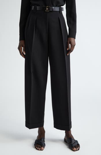 These pleated high-waist pants are immaculately tailored in a cuffed barrel-leg silhouette from signature Finesse crepe that's tactile with impeccable drape. Precision darting in back lends a flawless fit.
