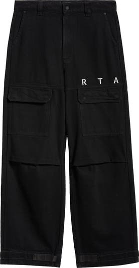 A baggy fit gives you room to move in these modern cargo jeans featuring roomy pockets, logo embroidery and hook-and-loop cuffs to adjust the leg shape.