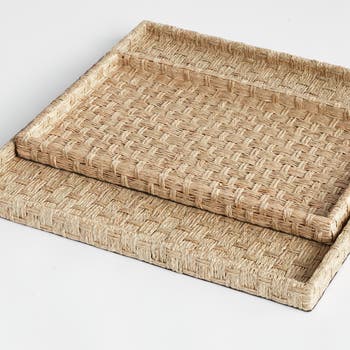 Intentionally designed as shallow nesting trays, this pair was created for versatility. Made of Mendong, a fresh water grass that is double braided for extra firmness. They're the perfect way to frame up your favorite books, small sculptures or candles on a table or ottoman. Get creative!