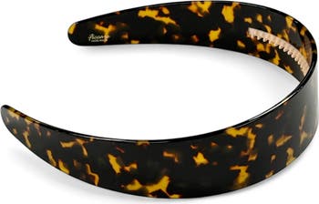 Grippy rubberized teeth tracing the interior create no-slip hold with minimal pressure in this wide headband covered in a tortoiseshell pattern.