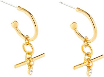 Half huggie hoop, half drop, our WYNNE CRYSTAL BAR EARRINGS are the best of both worlds. Featuring a chic chain paired with a charming beveled glass crystal drop accent that's one part elegant, one part edgy. And did we mention they're 2-in-1?? Simply slide the chain up and over the post and you'll have a classic hoop that's perfect for layering up with other huggies and cuffs.
