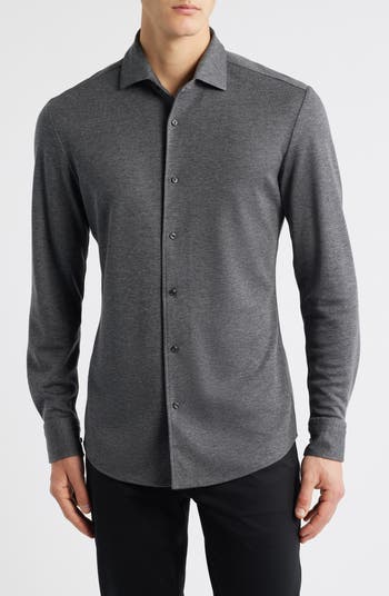 Level up your laid-back look in a supersoft knit shirt rendered in a stormy shade.