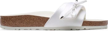 Comfort-first craftsmanship meets the exquisite bridal artistry of designer Danielle Frankel in this slide sandal wrapped in glossy satin with tuxedo-style piping, then crowned with a graceful bow. Beneath the haute-couture makeover, this shoe retains all the hallmarks of beloved Birkenstock designs—including the legendary footbed. Biometrically molded EVA cushioning absorbs shock and mimics the shape of a healthy foot, while pronounced medial and metatarsal arches support the instep and ball as you walk or stand.