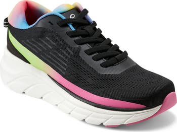 Bright colors elevate a breathable mesh sneaker designed for all-day comfort with a padded collar, contoured cushioning and a flexible grip sole.
