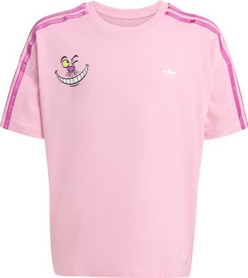 The Cheshire Cat and adidas lend their signature stripes to this loose-fit graphic T-shirt made just for kids from soft, breathable cotton.