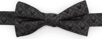 Hidden Mickeys framed in quatrefoil flowers smarten a bow tie that brings a touch of Disney distinction to any formal look.